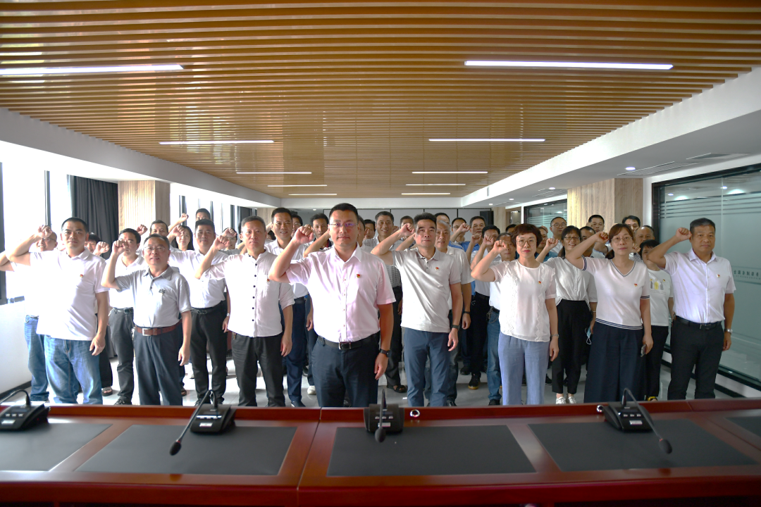 会前,集团党委书记黄翔带领参会党员集体重温入党誓词,以此庆祝建党一百周年,表达对党和国家的热爱。