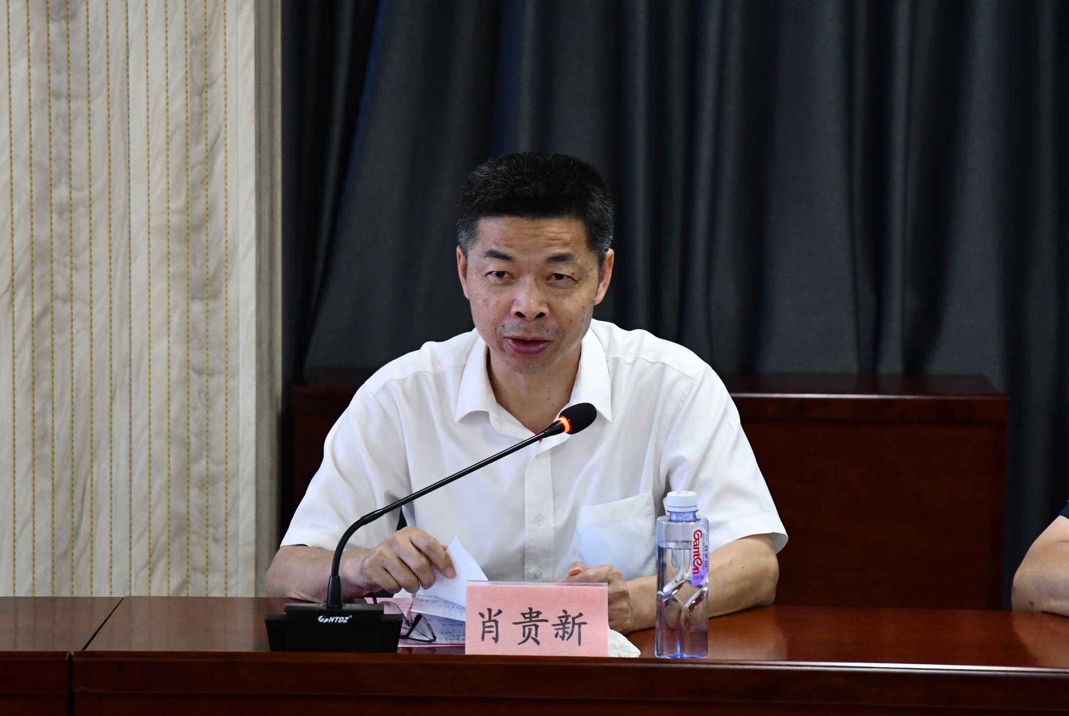 印务集团总经理缪后卫在会上就教材印制质量管理、绿色印刷体系建设、企业发展存在的问题和困难等方面作了具体汇报,并在政策引导、资金扶持、营商环境等方面提出了相关意见与建议。