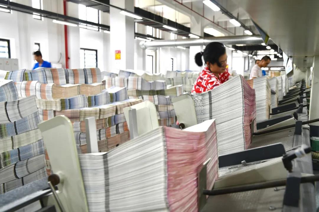 “落实统编三科教材工作重点,保质保量完成印刷光荣任务”“绿色印刷,坚决完成‘课前到书、人手一册’”…走进印务集团生产车间,高高挂起的红色条幅映入眼帘。正值盛夏,各生产车间里充满着热火朝天的热情,全体员工鼓足干劲全力赶工完成《习近平新时代中国特色社会主义思想学生读本》(以下简称“《读本》”)及统编三科教材印制工作。