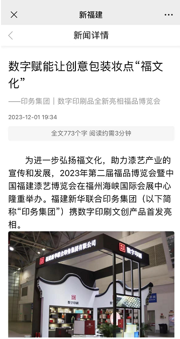 通过此次博览会,印务集团不仅展现了自身的实力和创新能力,今后还将进一步拓展福州脱胎漆器、寿山石、木雕等工艺品行业协会的合作机会和市场渠道,致力于解决文化产业配套印刷产品品质不高、同质化严重、精细化不足的行业痛点。印务集团将以参展此次博览会为契机,不断提升产品质量和技术创新能力,充分挖掘“印刷+文创”的发展新模式,以数字赋能推动“福文化”融合发展。