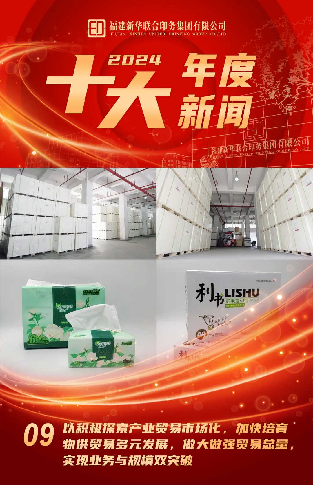 2024年,集团紧抓内部物资供应、商贸服务资源整合的机遇,全力推进全产业链布局,强化纸张上下游物资贸易项目,成功实现“一业为主,多业并举”新局面,产业多元化延伸成果斐然。保障教材教辅用纸,持续稳固纸张销售主业,成为全国首家人教社印制代理业务用纸委托管理单位,全面监管福建省内人教版印制代理业务纸张质量。大力发展循环经济,启动再生资源销售业务,实现社会效益和经济效益的稳步提升;探索市场化经营新路径,拓展木片销售业务,供货数量稳步增长;拓展国际市场,成功开启外贸进口纸张贸易良性运作新阶段,蹚出了国内国际双循环的业务增长新路子,填补了公司在外贸进口纸张领域的空白,为公司发展注入全新活力。同时,积极顺应市场变革,以优质的服务不断开拓文化用纸、复印纸、生活用纸等产品,将纸张销售与数字经济深度融合,成功实现销量的攀升。