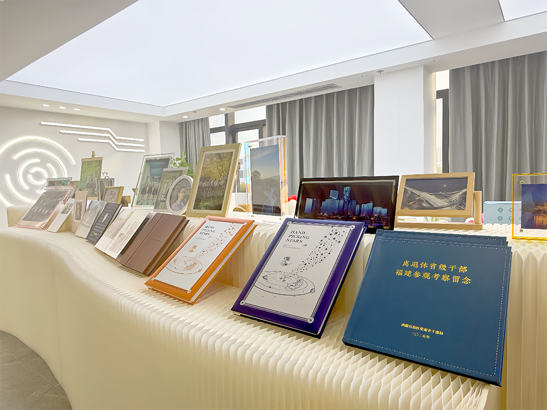 展厅内三大主题区域各具风韵,却又浑然一体,全方位展现文化创意的多元魅力。礼盒展示区里,一款款文创礼盒从外包装设计到内在产品搭配都尽显匠心,无论是节日馈赠还是个人收藏,都能找到适配的选择;照片影像区则是 “时光的容器”,这里涵盖相片打印、毕业相册定制、亲子相册制作以及艺术画框装裱等服务,一张张照片、一本本相册,将生活中的珍贵瞬间定格成永恒;文创产品展示区更是琳琅满目,自有 IP 衍生品贯穿生活方方面面 —— 融合实用与美学的笔记本、印有可爱 IP 形象的服饰、兼具功能性与设计感的雨伞等一应俱全,更有围绕地域文化特色与非遗传承开发的专属文创产品,让文化创意真正融入生活美学,助力人文精神代代相传。