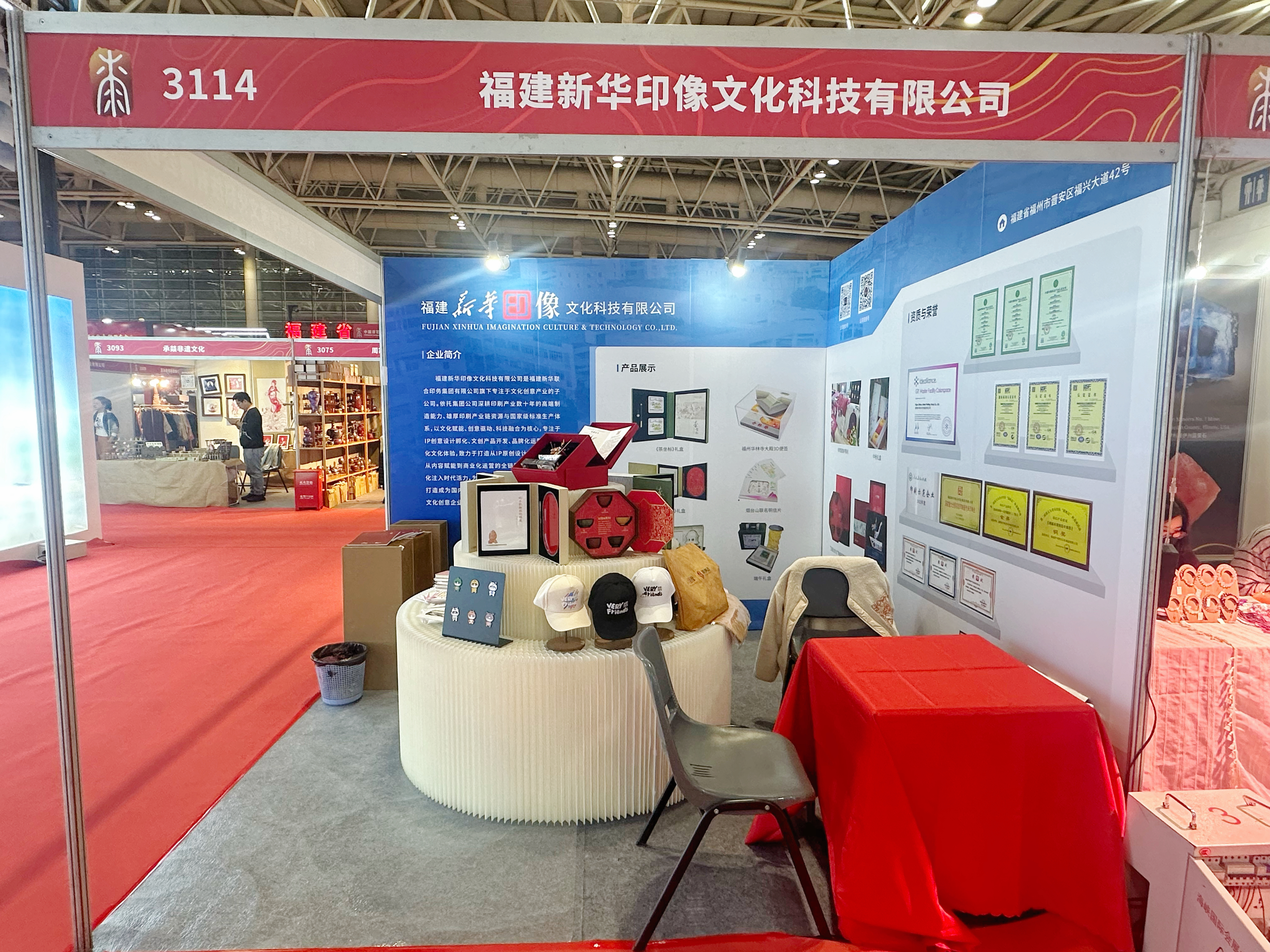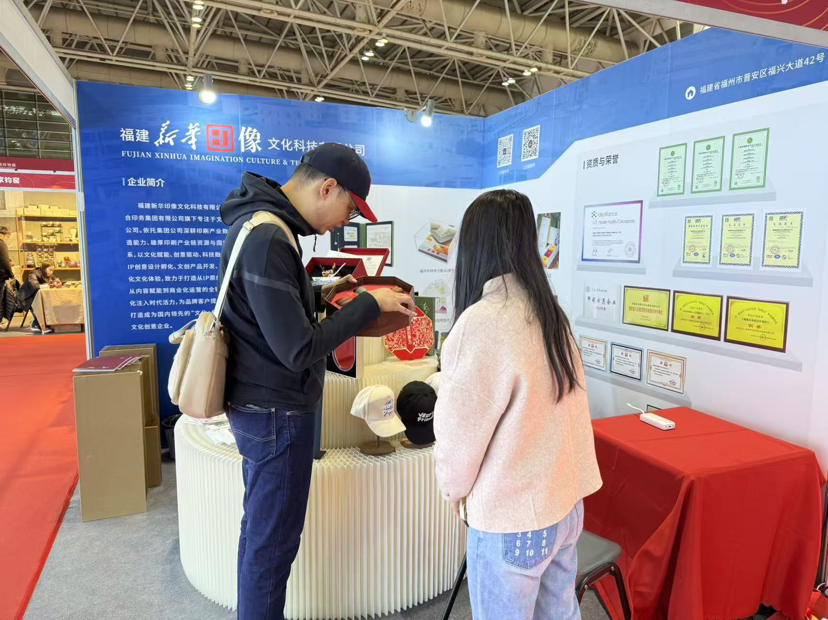 展会现场,新华印像公司集中展现了多款融合福建地域文化与现代审美的文创产品,涵盖大漆工艺茶器、木雕精品及IP衍生品等多个系列,吸引了众多观众驻足交流。期间,公司与本土知名商业品牌就渠道合作展开初步探讨,为产品未来进入商超、景区等多元消费场景奠定坚实基础。
