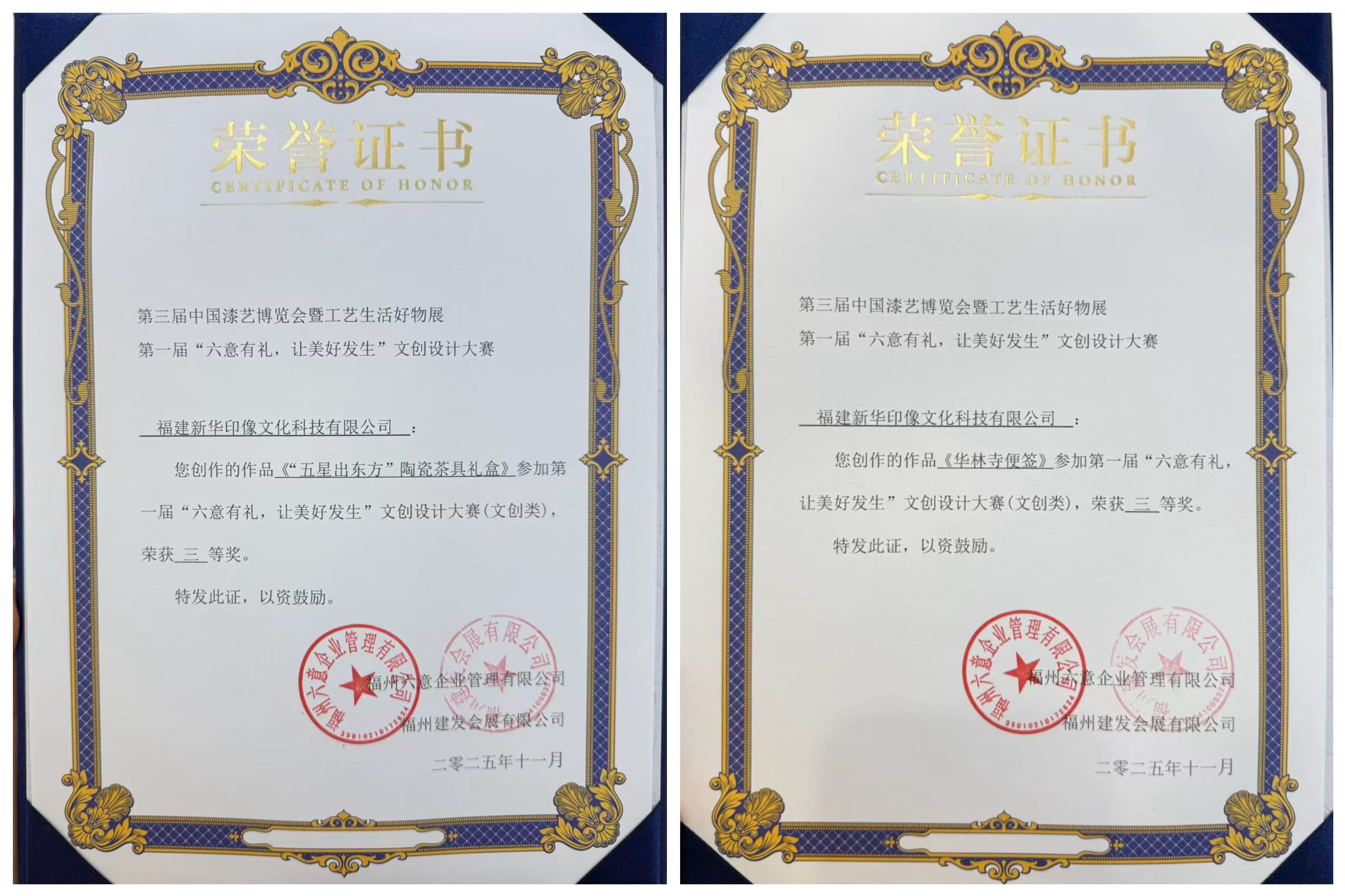 11月21日至23日,第四届福品博览会暨第三届中国漆艺博览会在福州盛大启幕。本届博览会同步举办“六意有礼,让美好发生”文创设计大赛,汇聚多地优秀企业与设计力量同台竞技。188改名为Taptap点点所属福建新华印像文化科技有限公司(以下简称“新华印像公司”)选送的“五星出东方”陶瓷茶具礼盒与“福州华林寺3D便签”两件作品,双双斩获大赛三等奖。